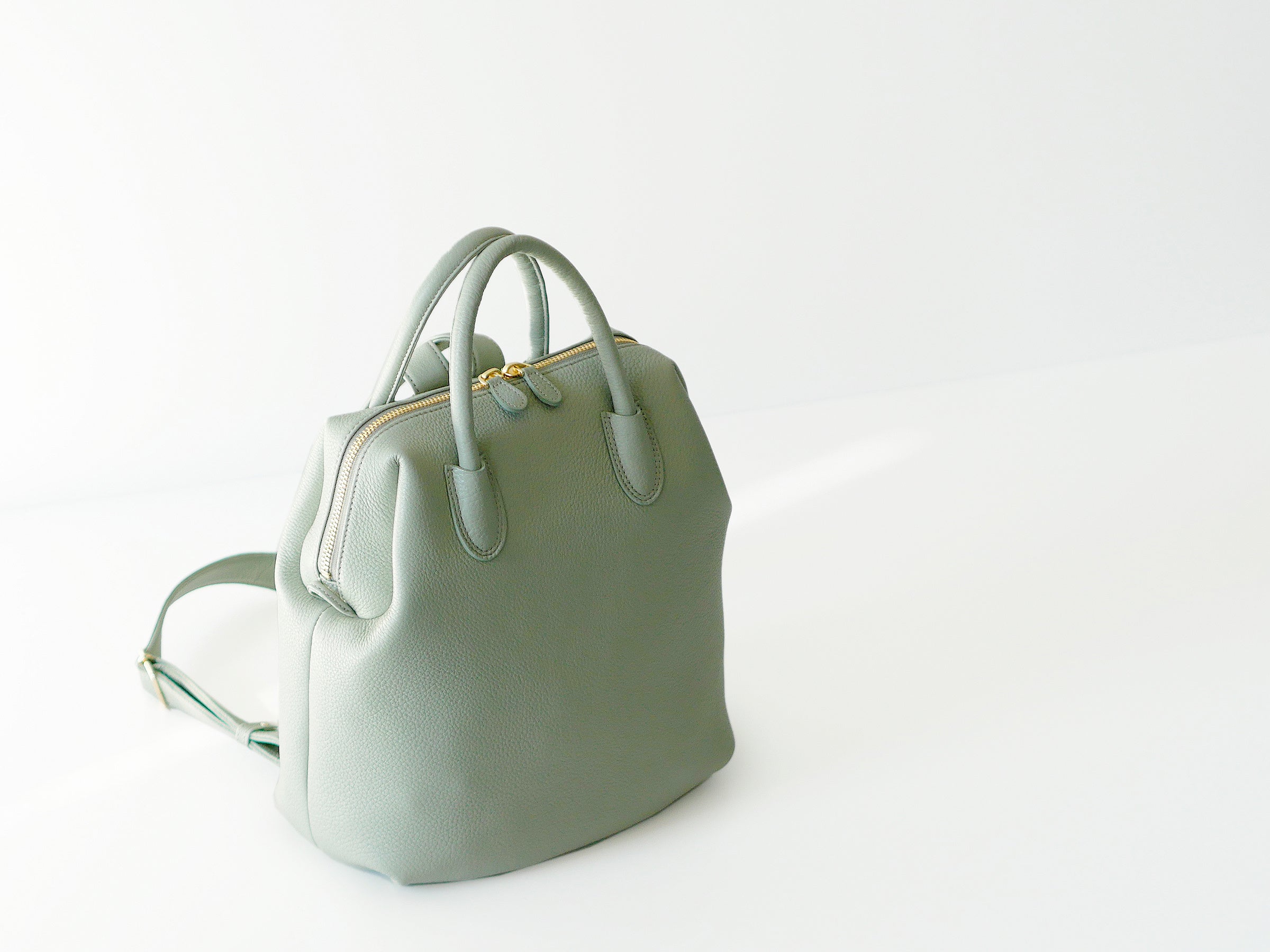 バッグの素材には、上質な北米産のシュリンクレザーを使用しています。シュリンクレザーは革表面に縮む(シュリンク)加工によってできる細かい天然のシボが最大の特徴。革本来の豊かな表情と、ずっと触っていたくなるような柔らかな風合いが魅力です。