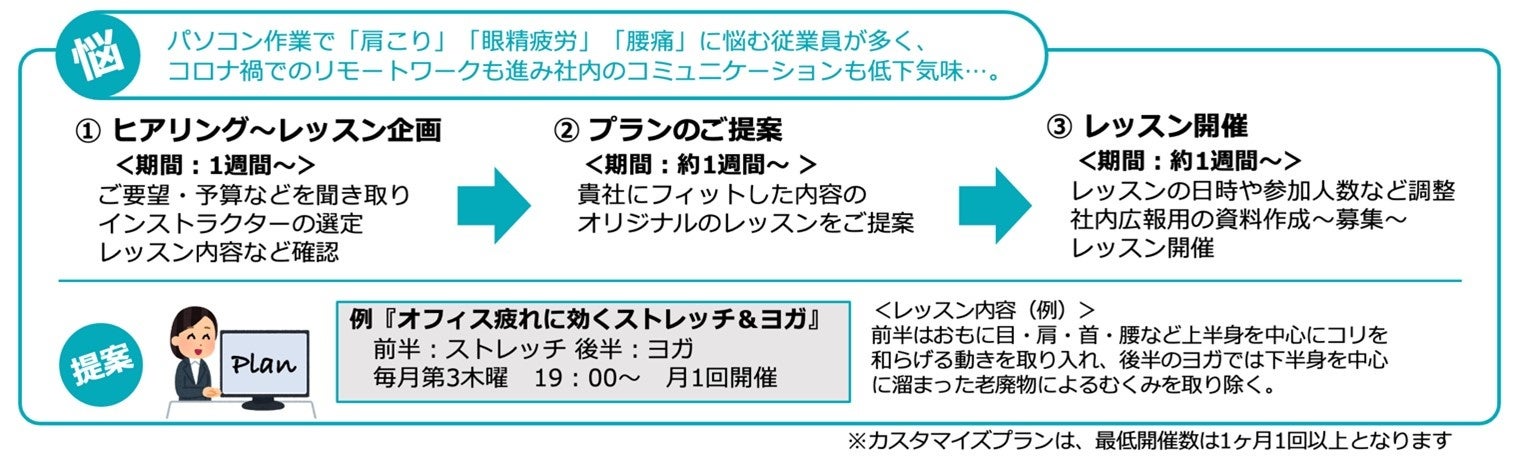 - 法人様のご要望に応じてレッスンをオーダーメードで提供する「カスタマイズプラン」