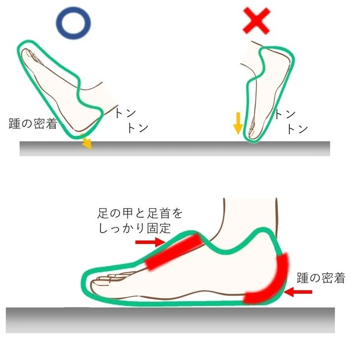ただ、せっかくひも靴を履いていても、ひもを緩めた状態で脱ぎ履きをしていては意味がありません。正しい靴の履き方は、靴をかかとでトントンと叩いてまずはかかとの位置を合わせます。そして靴紐を足の甲から順番に足首までしっかりと固定することが重要です。