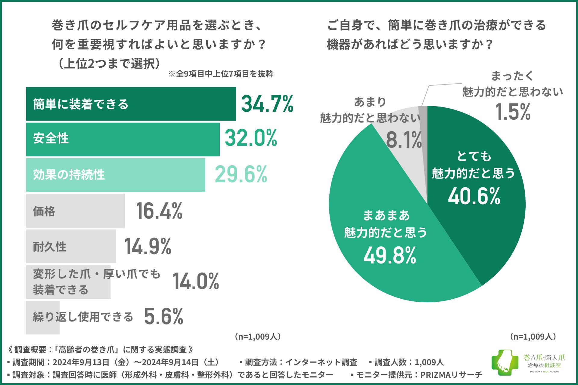 9割以上の方が、簡単に使用できる巻き爪の治療機器を魅力的だと感じていることが明らかになりました。