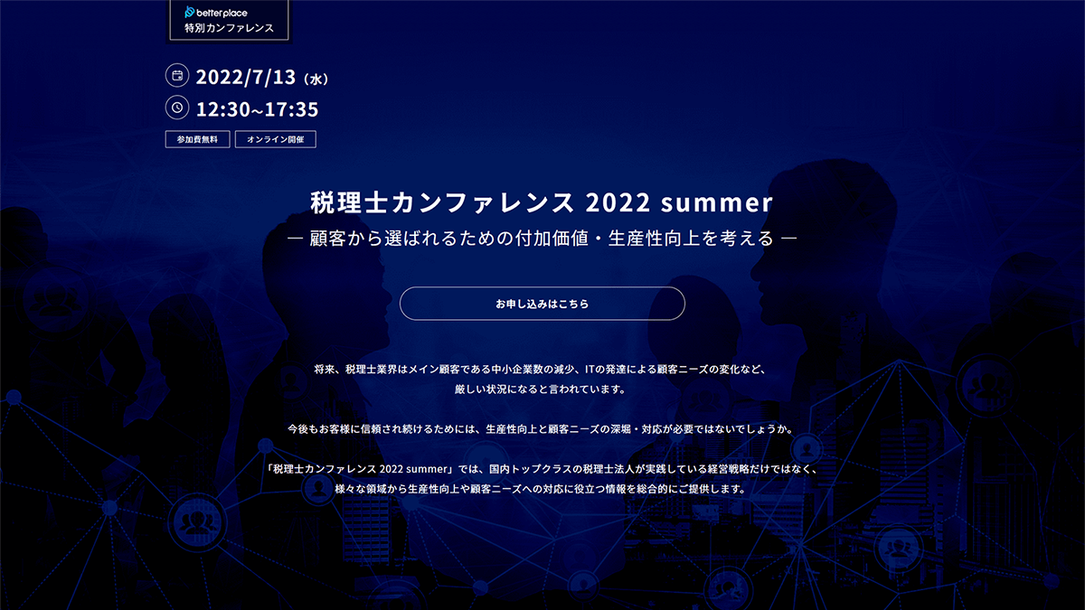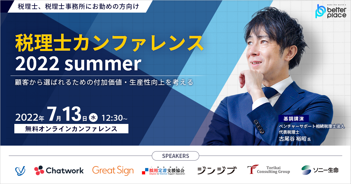 ベター・プレイス主催「税理士カンファレンス2022 summer」~顧客から選ばれるための付加価値・生産性向上を考える~オンラインイベント開催