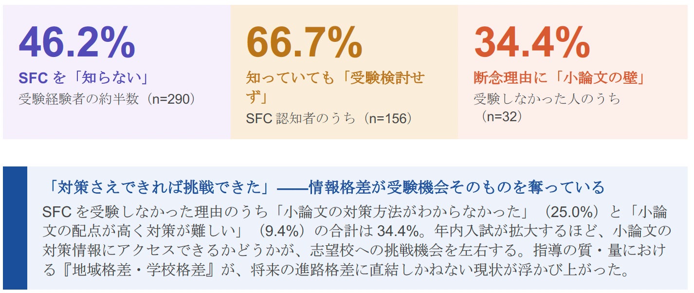 発見③ 小論文の壁が進路を狭める——SFC認知者の3人に2人が受験を断念