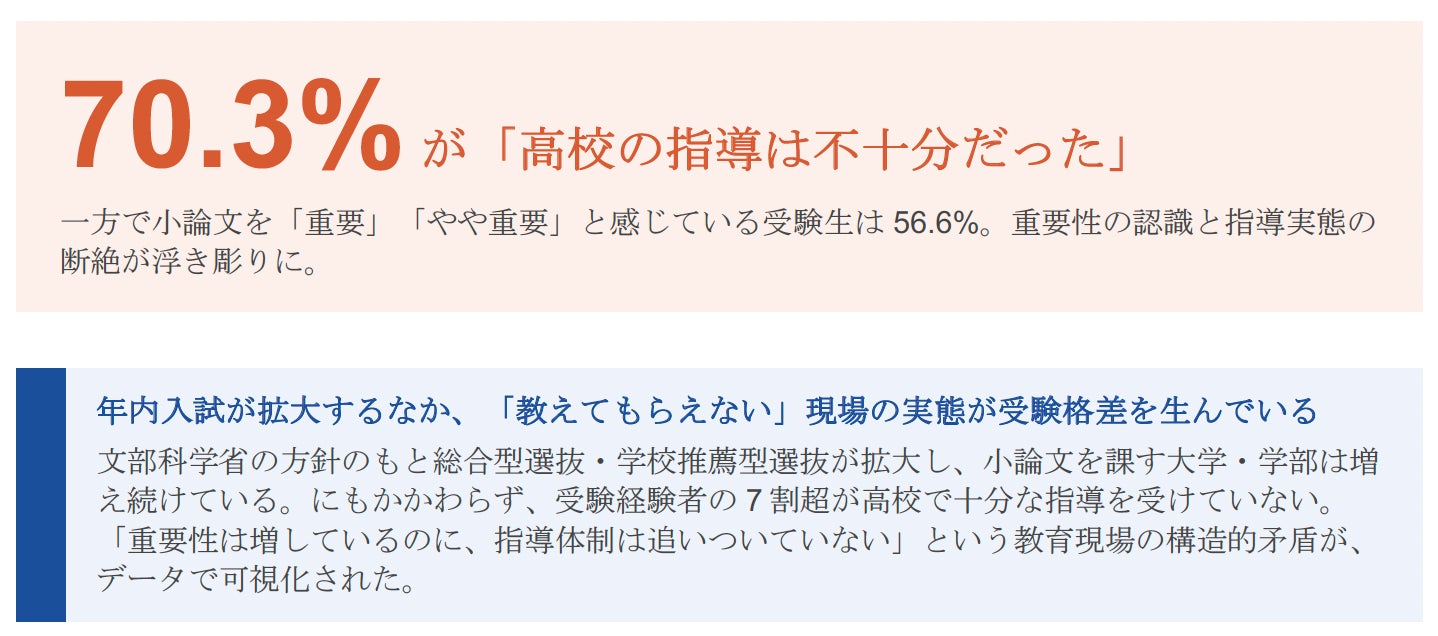 【受験生の7割が悲鳴】高校の小論文指導は「不十分」が浮き彫りに。