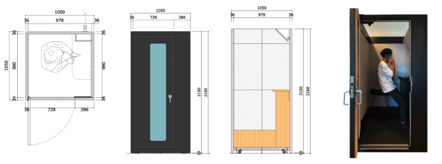 通常-20dBの遮音性能を持つ個室ブースはフルクローズドタイプで100万円を超えるブースが主流のため、コスパが良くてお得です。