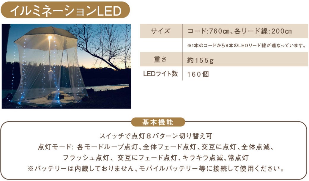 FULLセットは下記のすべてが含まれる。BASICセットにはLEDランタン、LEDイルミネーションライトは含まれない。