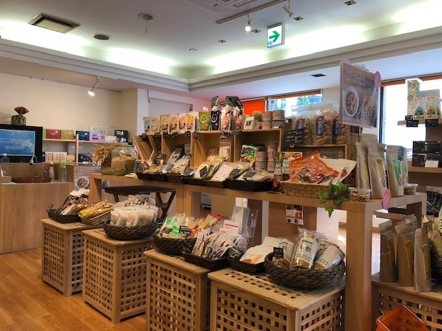 また1階のショップでは、カフェでも使用している安心、安全な食材や日用品を販売しています。