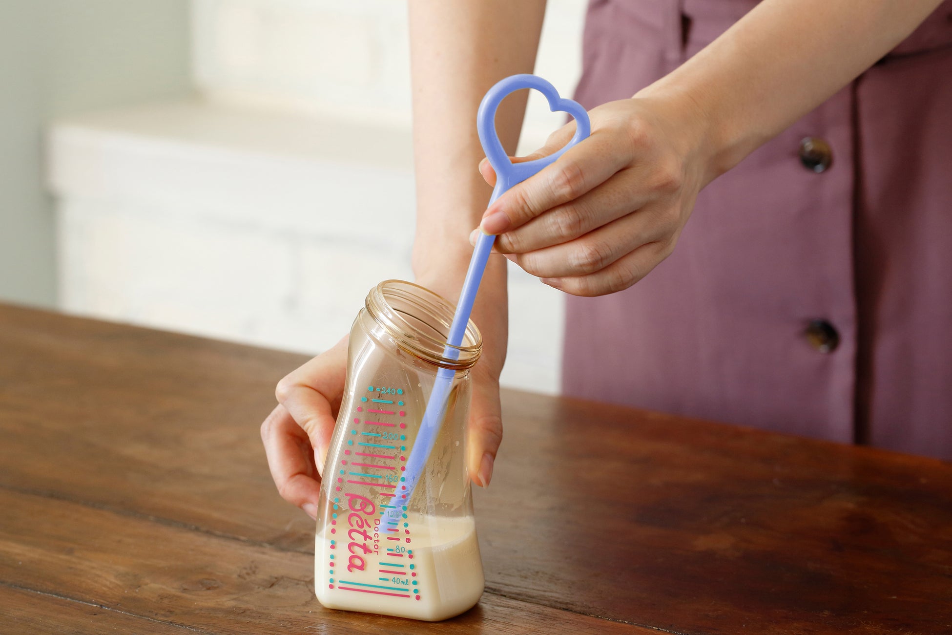 ベッタ哺乳びんのカタチに合わせて緩やかなカーブがついたマドラー。哺乳びんの底面にミルクが溶け残るのを防ぎます。カーブのおかげでマドラーを置いてもテーブルに先端が触れることなく衛生的に使えます。授乳期が終わっても長く使えるデザインです。