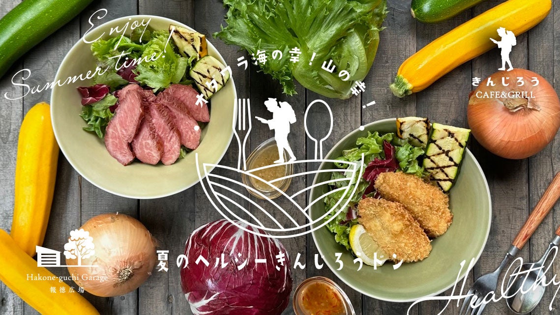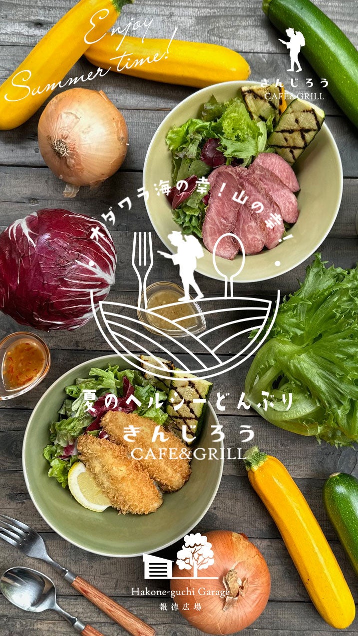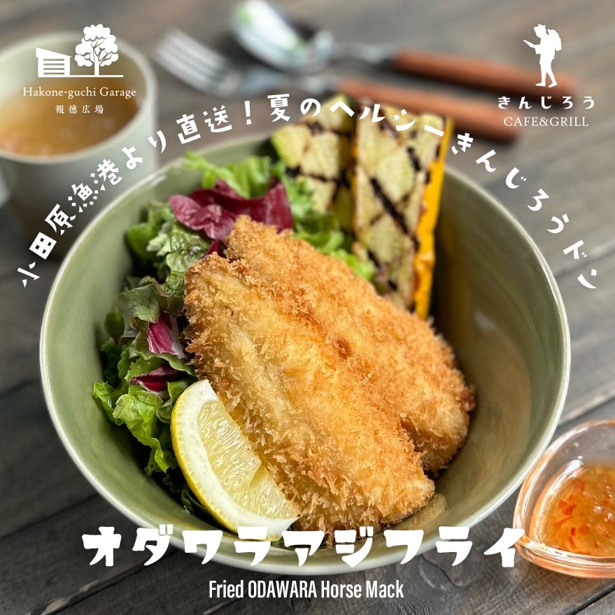 箱根口ガレージ報徳広場(報徳仕法株式会社:神奈川県小田原市南町2-1-60)内にあるきんじろうCAFE&GRILLでは、7月10日(月)より小田原漁港で水揚げされたアジや地場野菜をできるだけ使用した、サラダ仕立ての夏のヘルシー「きんじろうドン」を発売いたします。