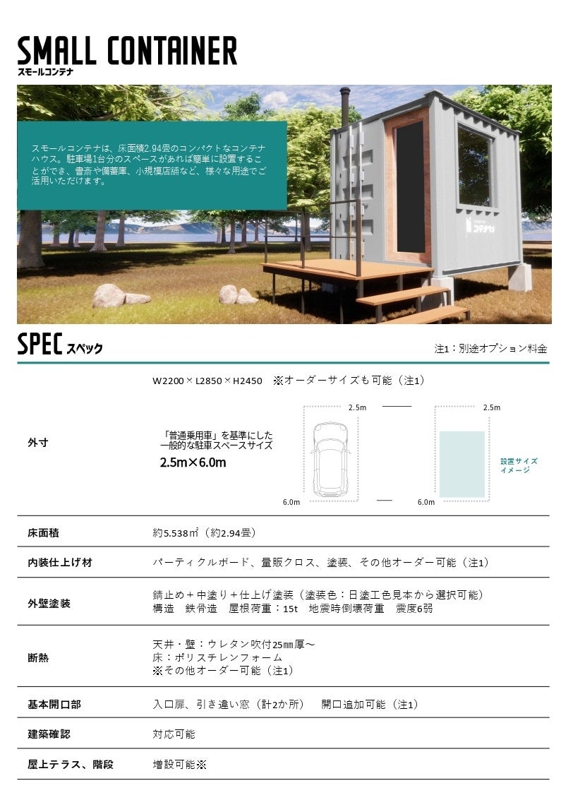用途は無限大!駐車場1台分に収まるスモールコンテナ12月12日販売スタート