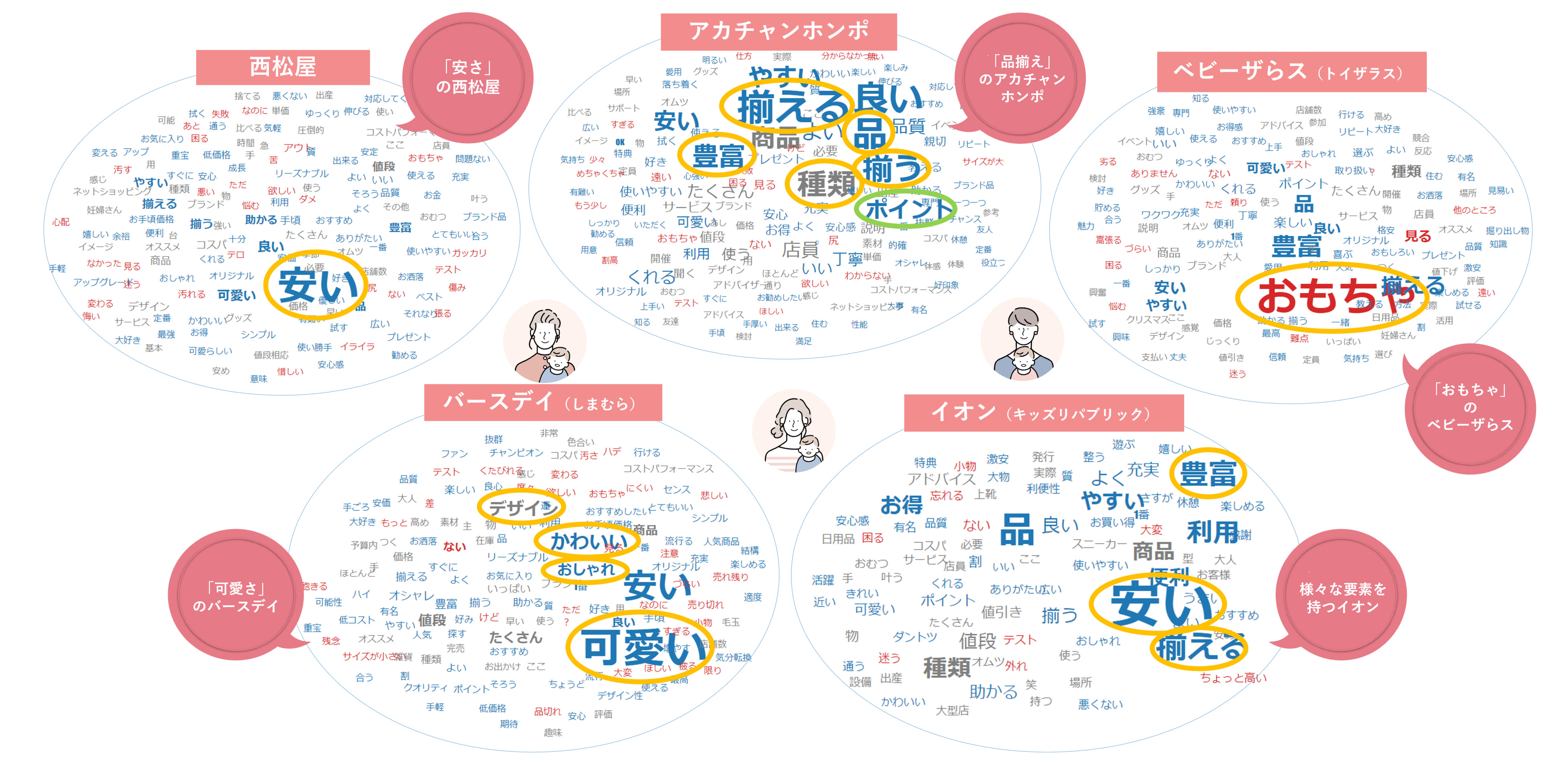 - 推奨理由コメントからそれぞれのポジショニングが明らかに(ベビー用品専門店ブランド)