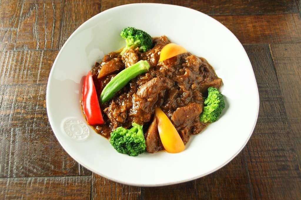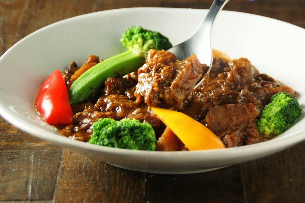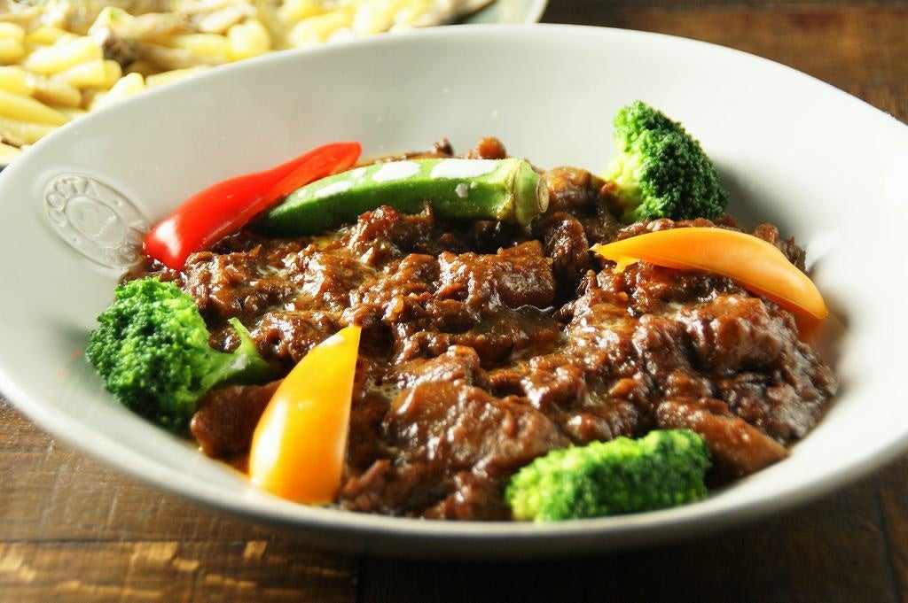 最高ランクA5等級の黒毛和牛の牛すじ肉を自家製デミグラスソースで煮込んだシェフこだわりの肉料理。