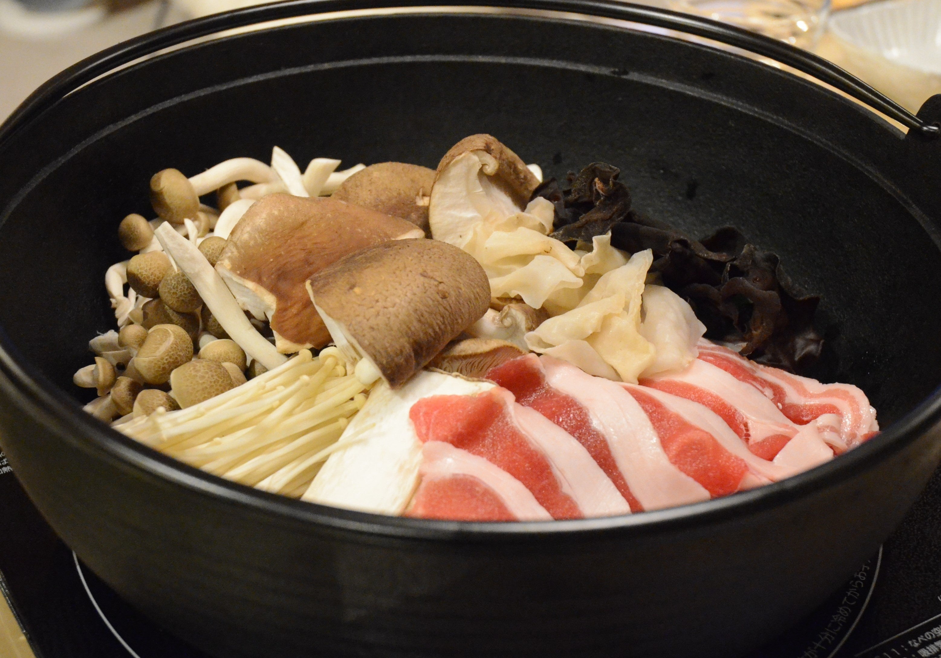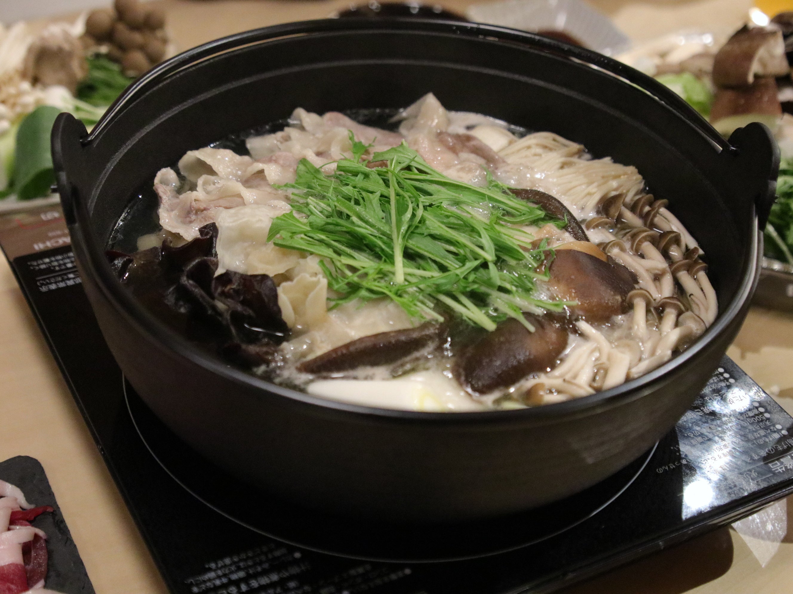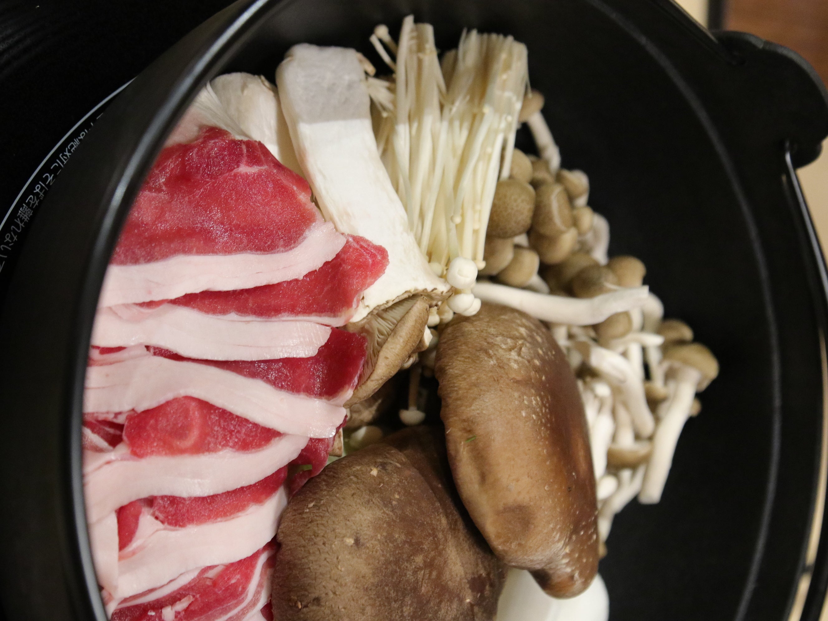 お鍋の具材には猪のロースやバラ肉のほか、龍神しいたけ(田辺市龍神村産)や高級食材「白いきくらげ」(田辺市伏菟野産)などをご用意。お出汁は減塩鰹節(和歌山県すさみ町産)をご提供しています。