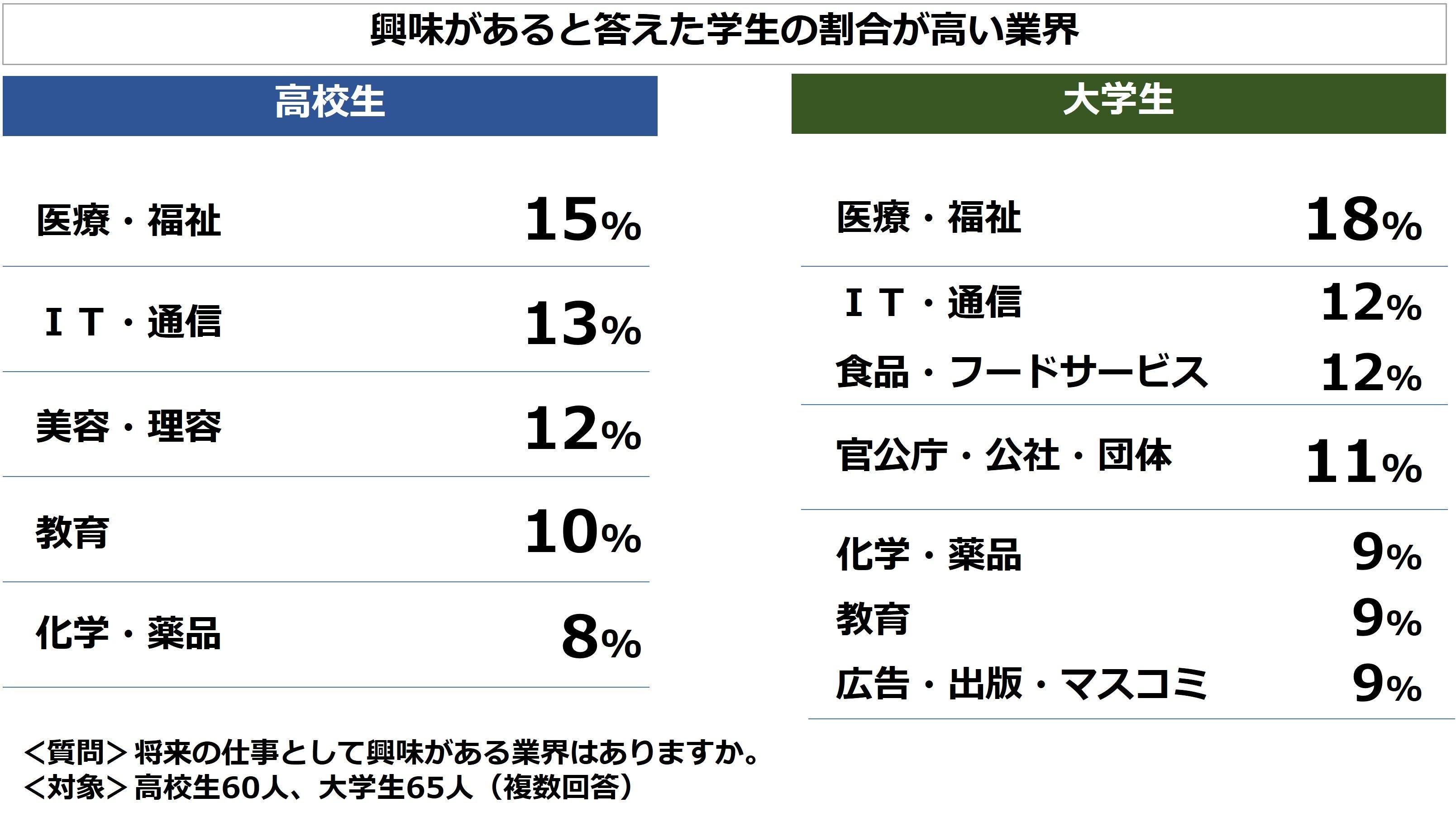 - 興味がある業界と働きたい企業の業界が異なる結果に
