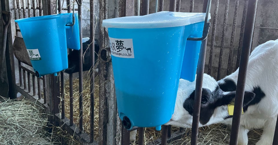酪農畜産の現場では、よく哺乳バケツと呼ばれるものがあります。ゴム製の乳首がついたバケツのような形をしており、子牛にミルクを与えるために使用します。開発のきっかけは、寒冷地にお住まいの方からのご意見でした。「冬になるとミルクがどうしても冷める。何か良い手段はないか」というものでした。そこでシリコン製のカバーが付属した哺乳バケツを開発。カバーをバケツにかぶせることでミルクが冷めない保温効果だけでなく、ゴミや虫など異物の混入も防げるようになりました。ゴム製なので何度も洗って使用することができ、熱湯にも耐える耐熱性を持っています。