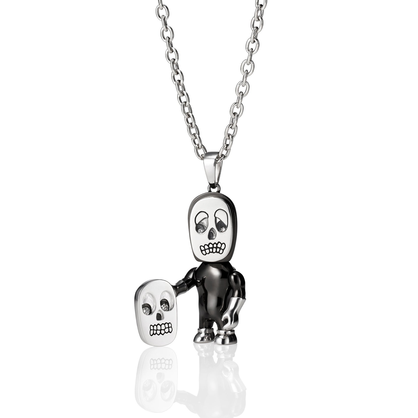ネックレスはジャスティン デイビスの持つ技術力を活かし限りなく彫刻作品に近く、仮面にはマグネットを施し、表情を変化させることができます。