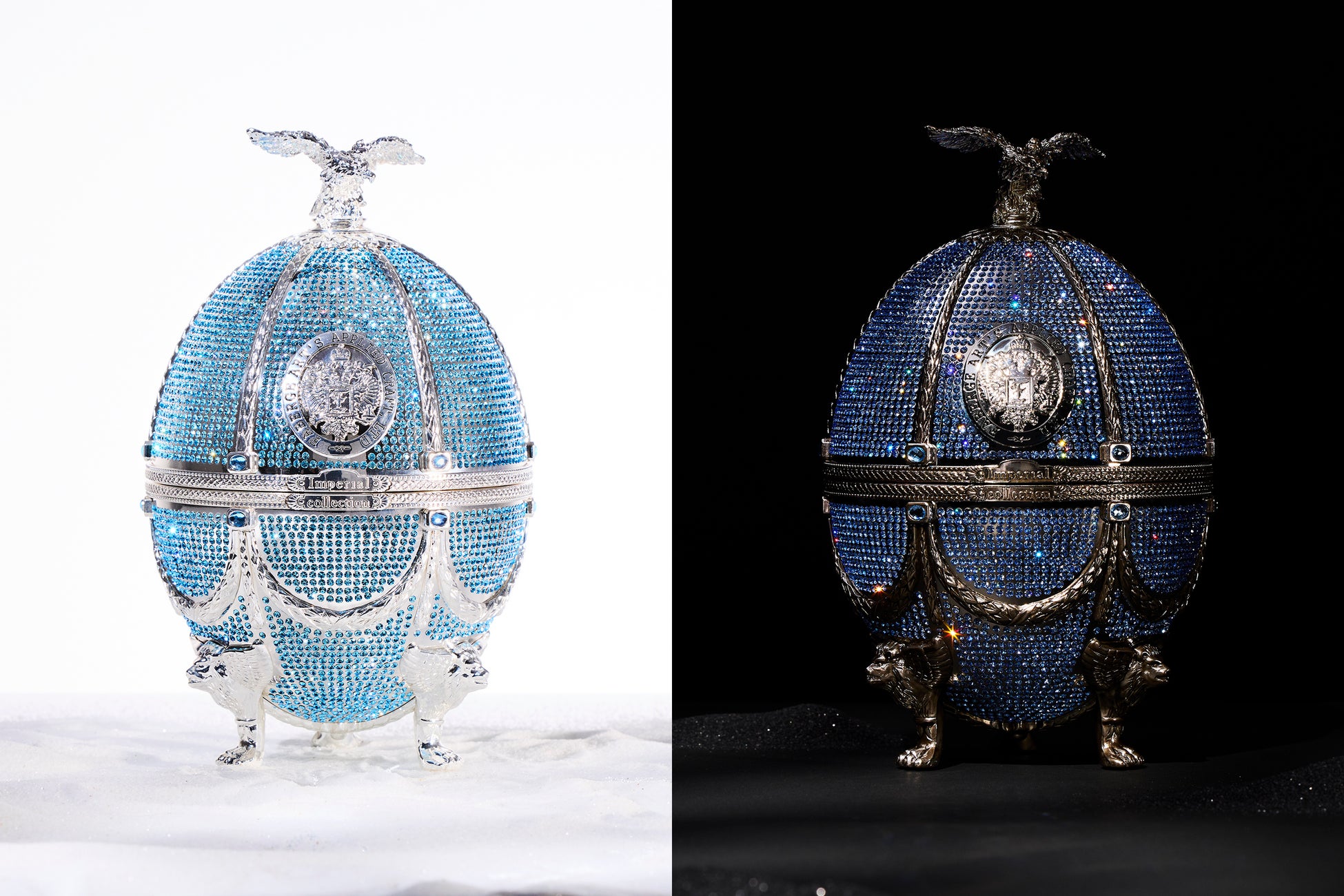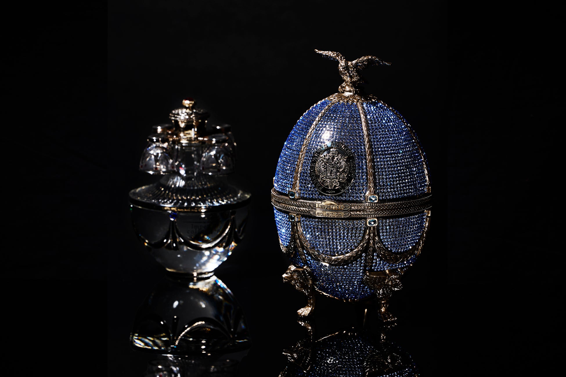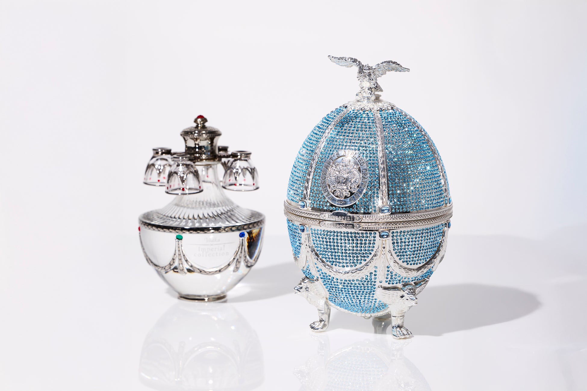 「Imperial Collection Vodka」は、絢爛豪華な装飾を纏ったエッグの中に優美なヴェネツィアングラスに装飾を施したデキャンタと4つのショットグラスが収められています。そのデキャンタに詰められているのは、伝統的製法で精緻に造られたスーパープレミアムウォッカ。クラフトマンシップのすべてを結集させたハンドメイドコレクションです。