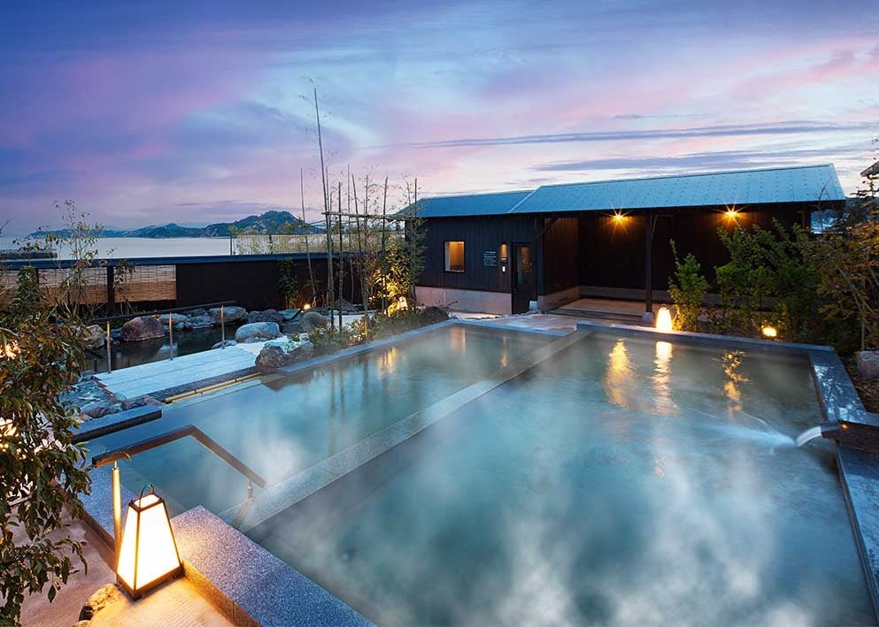 瀬戸内温泉たまの湯は、岡山県玉野市にある日帰り温泉施設です。海沿いに位置しており、瀬戸内海を 眺めながら温泉に浸かれるのが特徴と、本格的な和食を楽しむことができる和食レストランがあり、特に夕日が沈む時間帯は美しい景色と食事を楽しめる施設です。