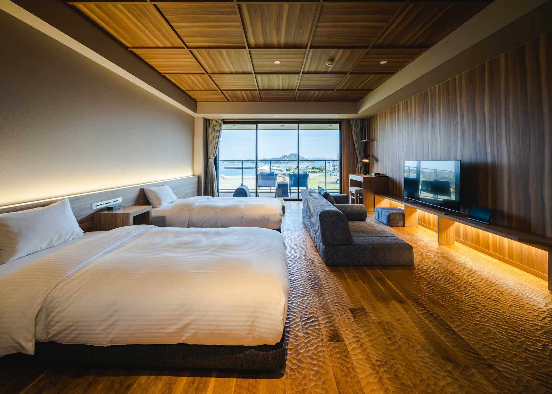 『 北木島産エンペラーオイスターとシェフ厳選ズワイガニのフルコース 』は、UNO HOTELの宿泊セットのご用意もしておりますので、のんびりと温泉に浸かり旅の疲れを癒しゆっくりとシェフのお食事を心行くまでお楽しみください。