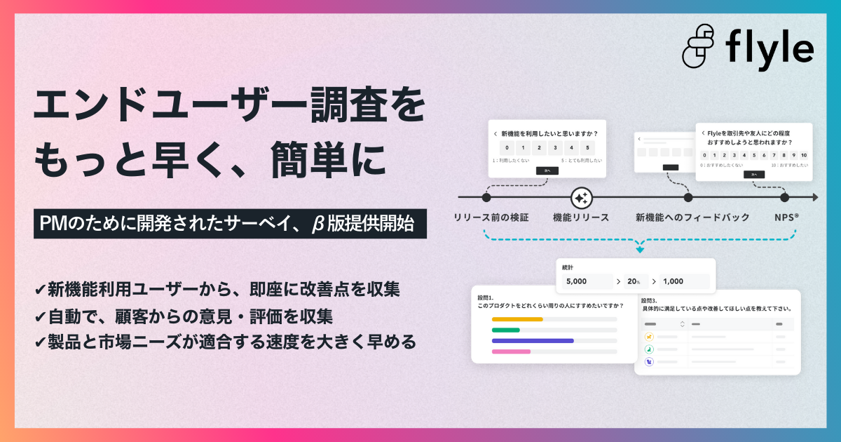 「エンドユーザー調査をもっと早く、簡単に。」プロダクトマネージャー向けサーベイ製品「Flyle Survey」β版を提供開始。