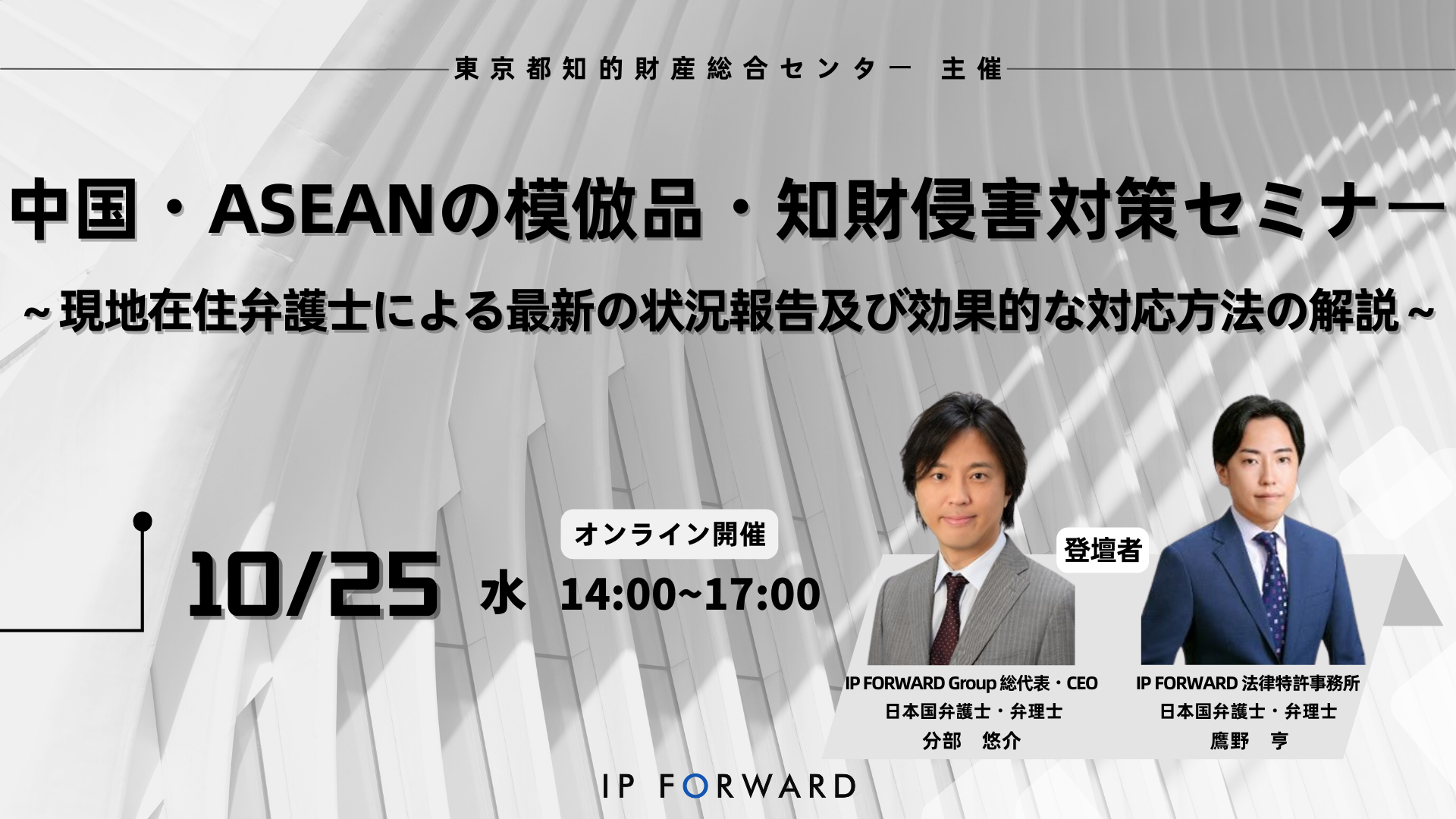 中小企業向け無料ウェビナー10月25日(水)開催「中国・ASEANの模倣品・知財侵害対策セミナー」