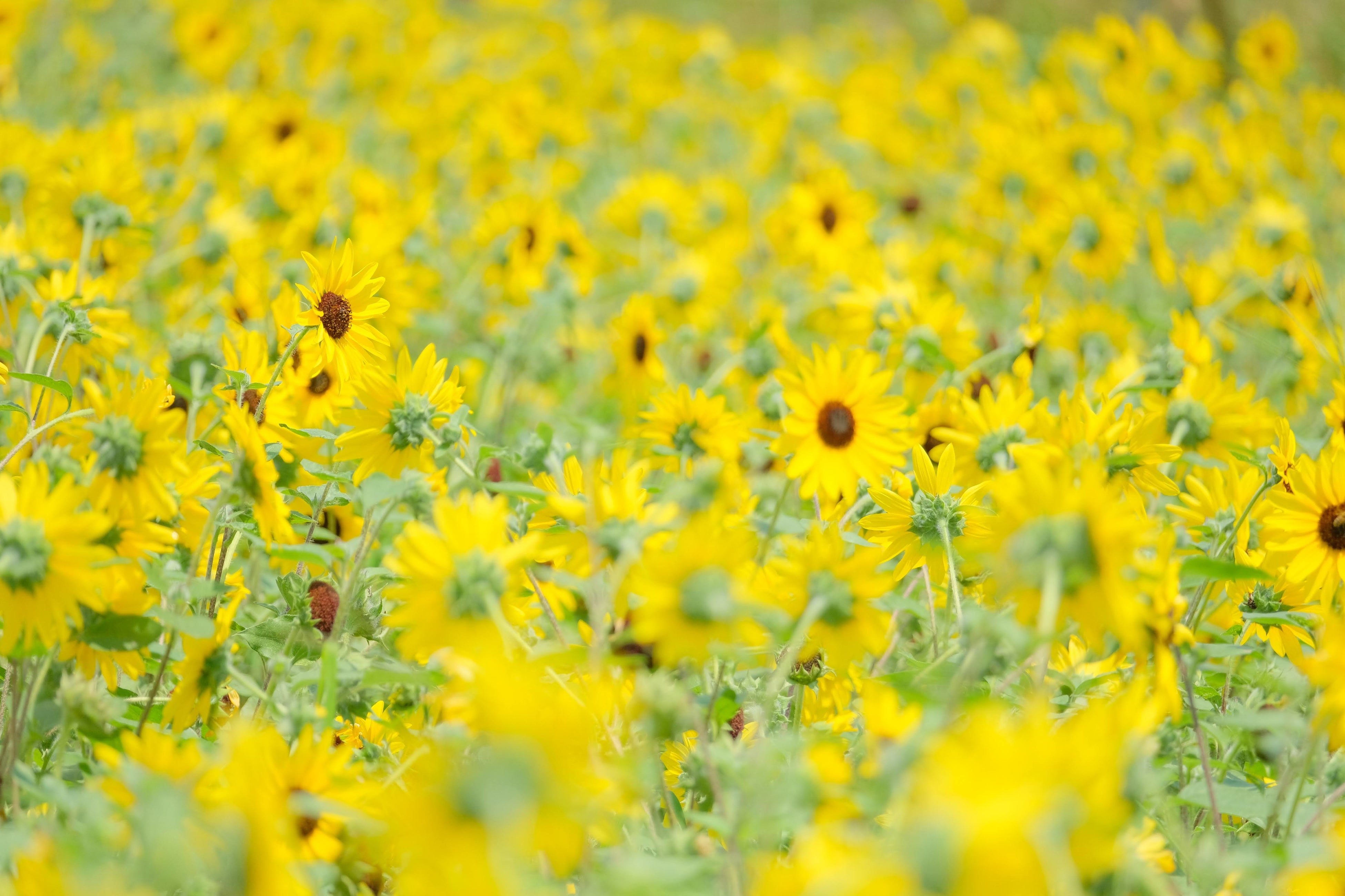 「にほんの里100選」に選ばれた、自然豊かな里山が広がるいばらきフラワーパークで、辺り一面をビタミンカラーに染めるヒマワリ