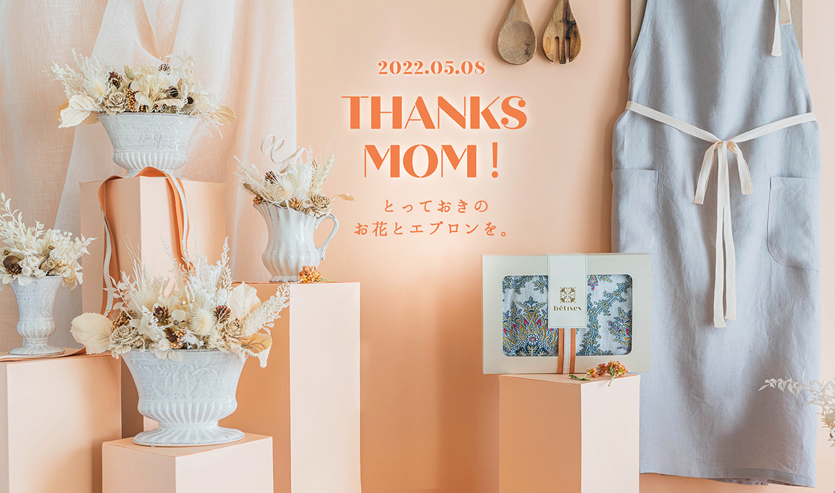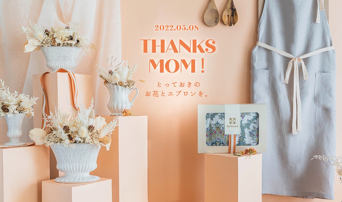 キッチンリネンとフラワーのショップ「bêtises(ベティーズ)」は、2022年4月1日(金)~5月8日(日)の期間にお花とエプロンを中心とした母の日ギフトの販売をいたします。