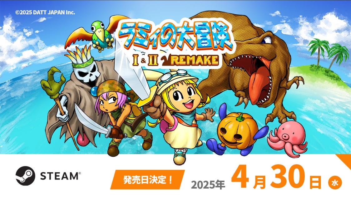 ダットジャパン株式会社(本社所在地:北海道札幌市/代表取締役社長:佐脇 由宏)は、富士通FMVシリーズにバンドルされていた「ラミィの大冒険」シリーズ最新作として、Steamプラットフォームで「ラミィの大冒険 1&2 リメイク」を「2025年4月30日(水)」に発売することを決定いたしました。