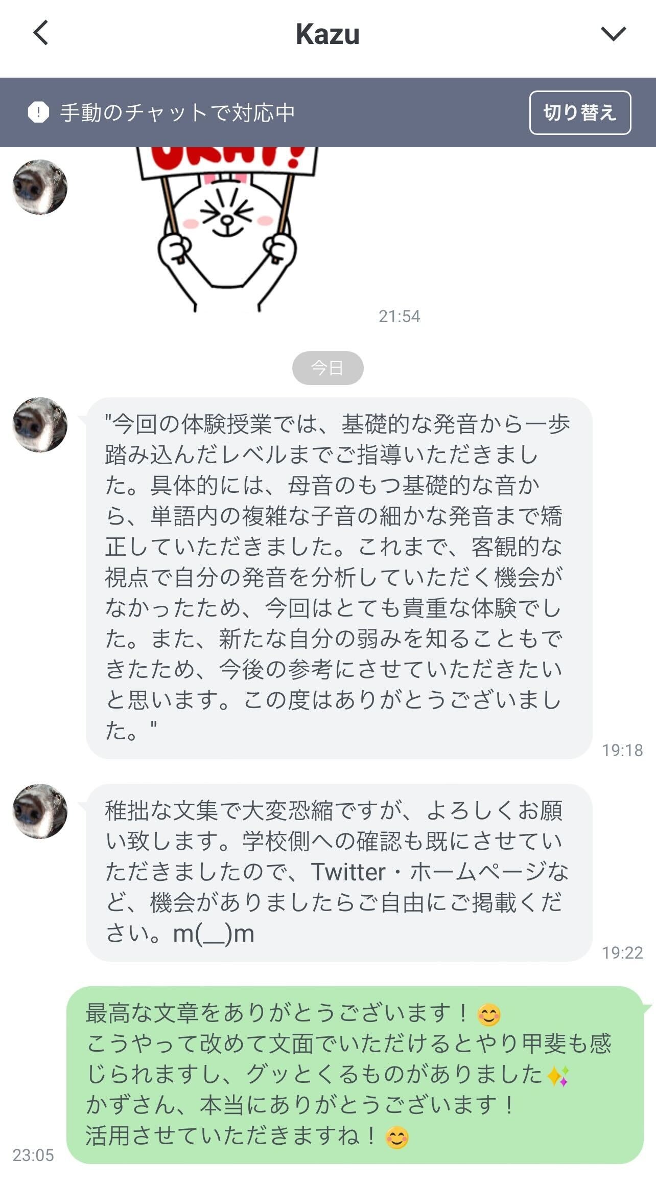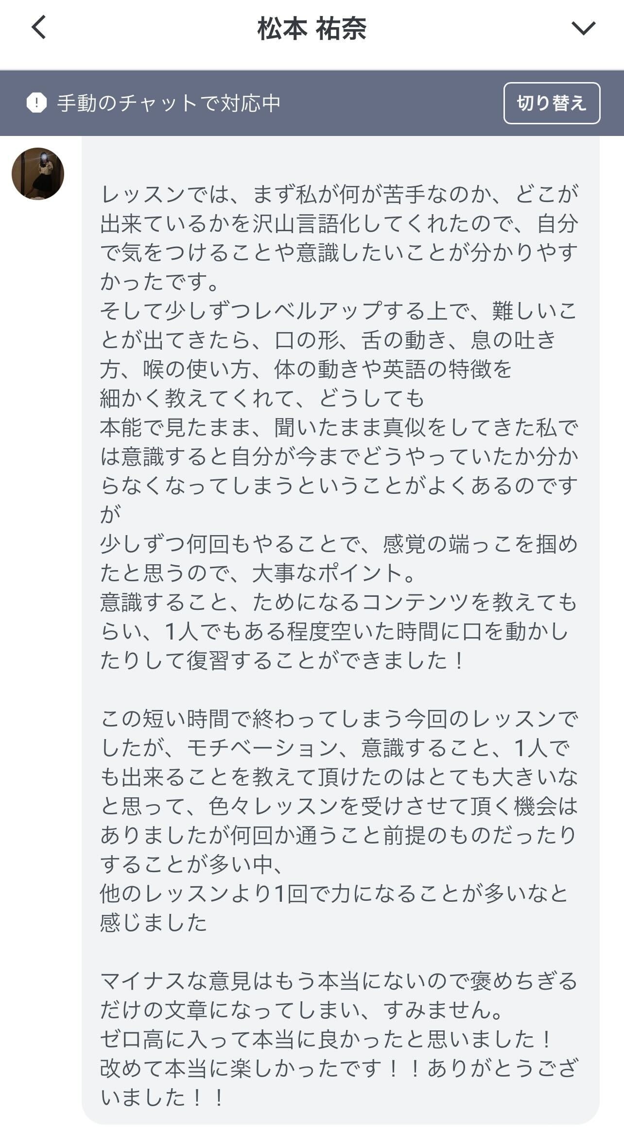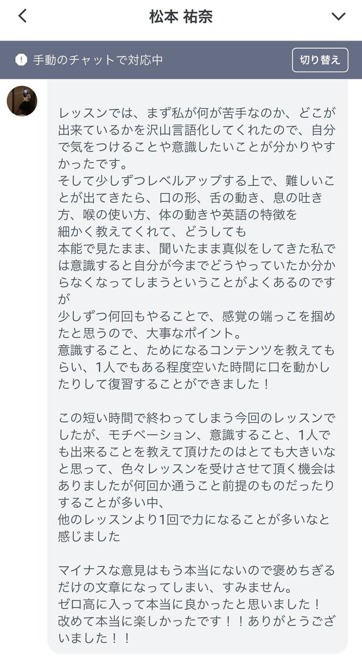 専属の日本人バイリンガルコーチ(全員がTOEIC900点以上を取得)が、 英会話レッスンだけでなく 自習相談や質疑応答まで徹底サポートします。 レッスン以外の時間でもチャット上でいつでも質問や相談ができます。