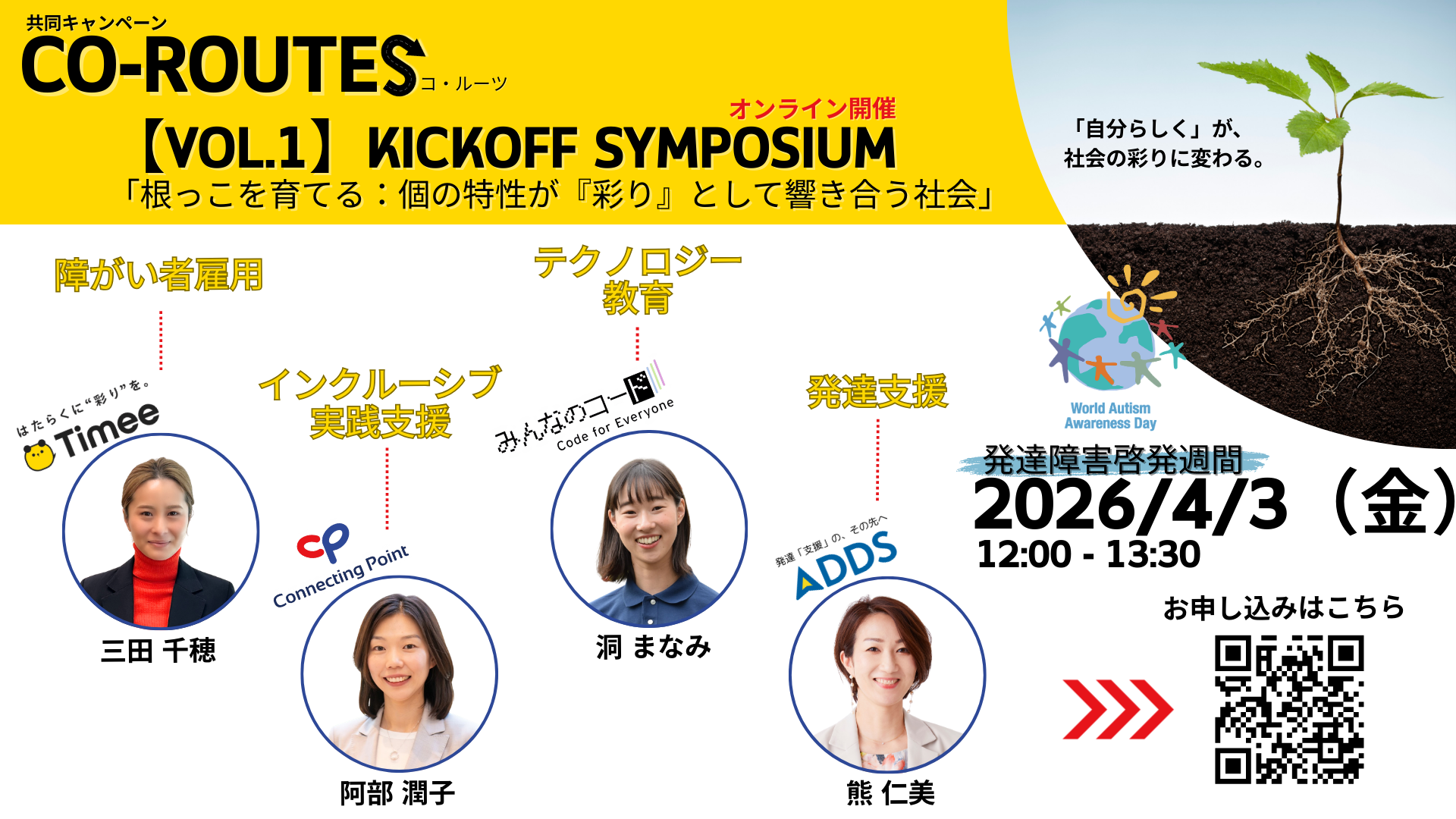 発達障害啓発週間にシンポジウム開催!特性を「自分らしく」という彩りへ。領域を超えた初の『CO-ROUTES(コ・ルーツ)』キャンペーンを共同で展開