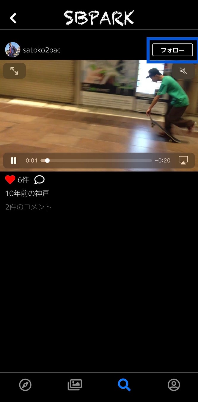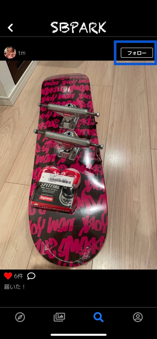 相互フォローしてスケーター仲間を増やしたり、お気に入りのスケーターを見つけてフォローすればいつもでフォローしたスケーターの動画や写真をチェックできます。