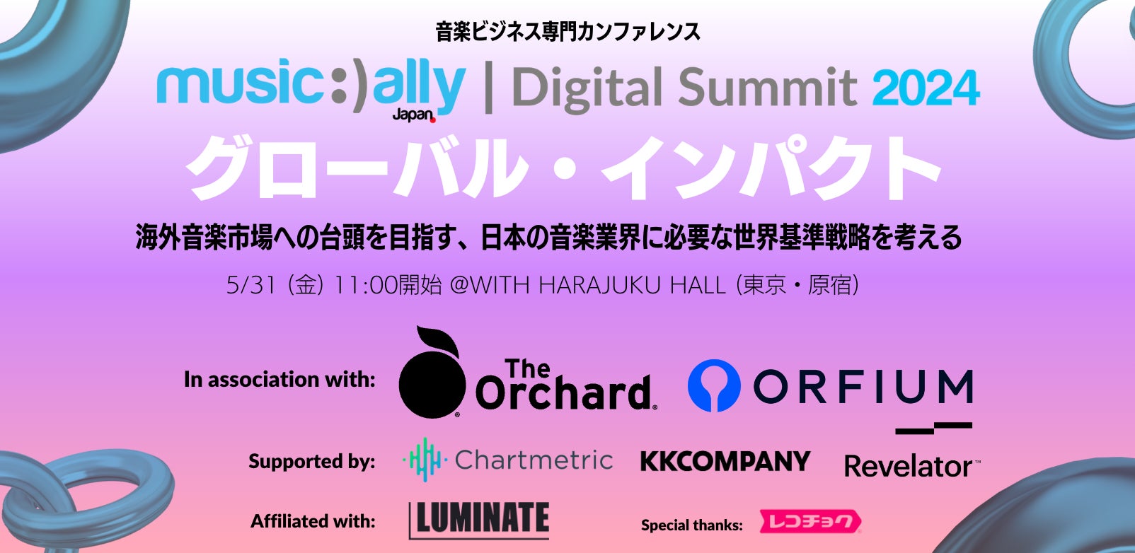 音楽ビジネス専門カンファレンス『Music Ally Japan デジタルサミット2024〜グローバル・インパクト』詳細発表!5月31日(金)WITH HARAJUKU HALL(東京・原宿)にて開催