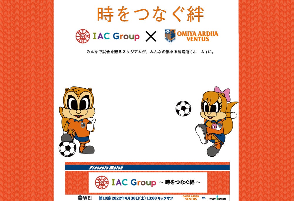 【大宮アルディージャVENTUS × IACグループ】"日本初の女子プロサッカーリーグ"加盟クラブとスポンサー企業による社会連携活動「時をつなぐ絆」プレゼンツマッチを開催