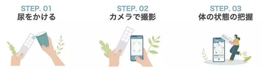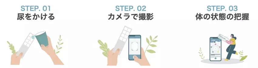 当社は誰もが「すぐわかるを、もっと身近に」をビジョンとする、東京大学との共同研究で立ち上がったヘルスケア企業です。尿中の成分に応答するバイオマーカー及び独自のカメラ解析技術「ユーリア AI」を研究開発しています。本技術を活かした検査キットとスマートフォンアプリを活用することで、誰もが簡便な 3 ステップで体の状態が理解できる即時尿検査サービスの技術を提供しています。当社は、本技術を通じて人々の Well-Being 維持・向上へ貢献していきます。