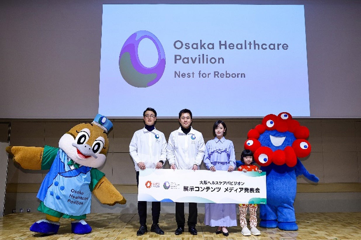 メディア発表会では、大阪ヘルスケアパビリオンでの展示コンテンツが公開され、その一部を吉村洋文大阪府知事、横山英幸大阪市長等が体験しました。