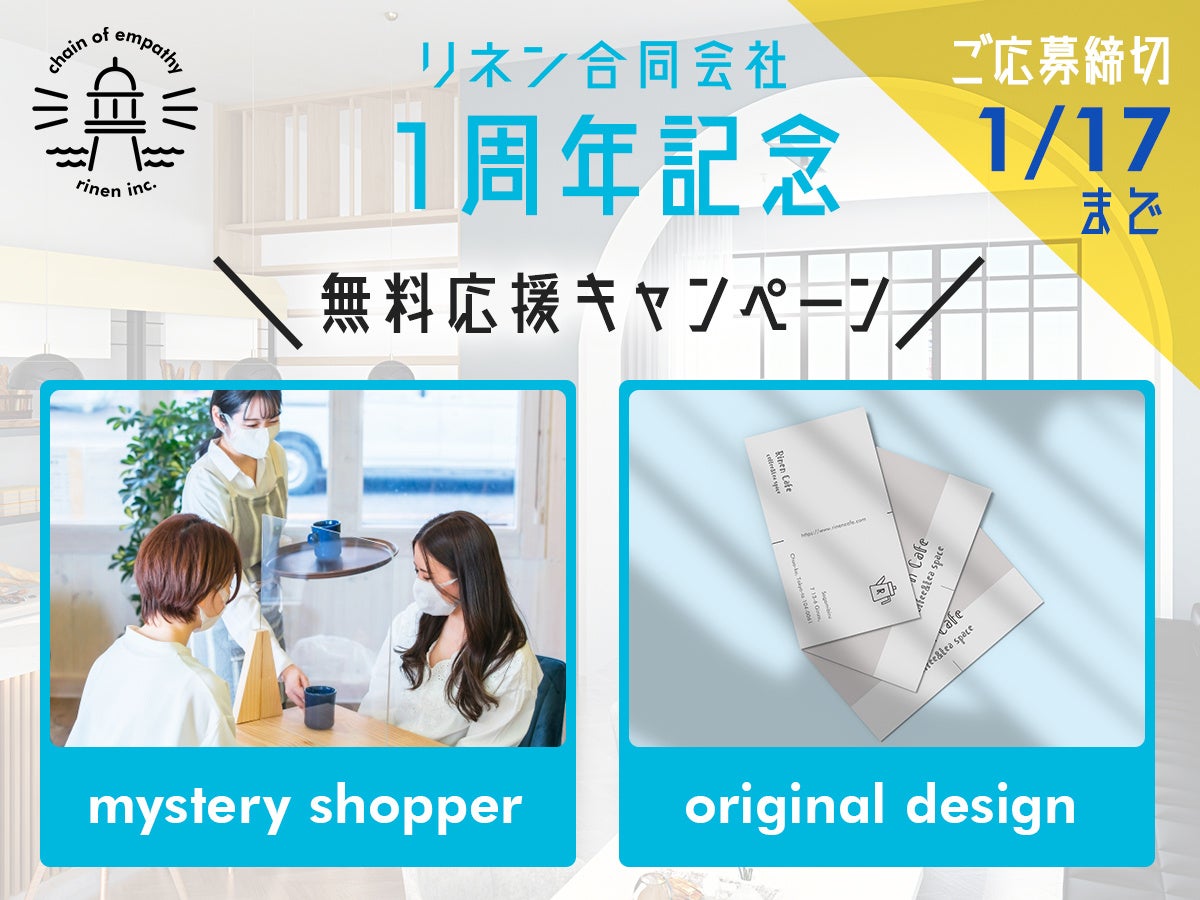 リネン合同会社 設立1周年記念! 特別な無料応援キャンペーン(覆面調査プラン・オリジナルデザイン制作プラン)を実施!