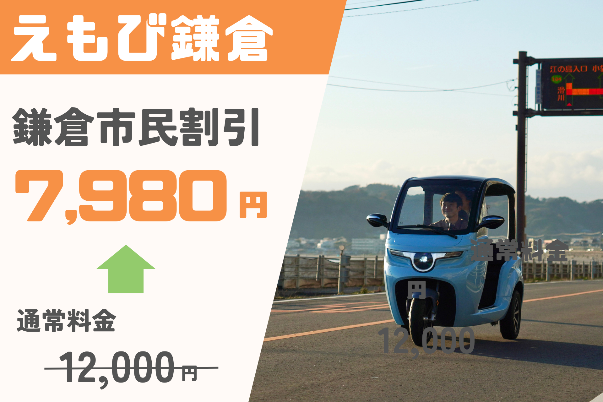 7,980円(4時間)でご利用いただけます。えもびの電動トゥクトゥクは3名まで乗れますが、ご利用者様の中に1名でも鎌倉市民の方がいらっしゃる場合は鎌倉市民割引が適用されます。