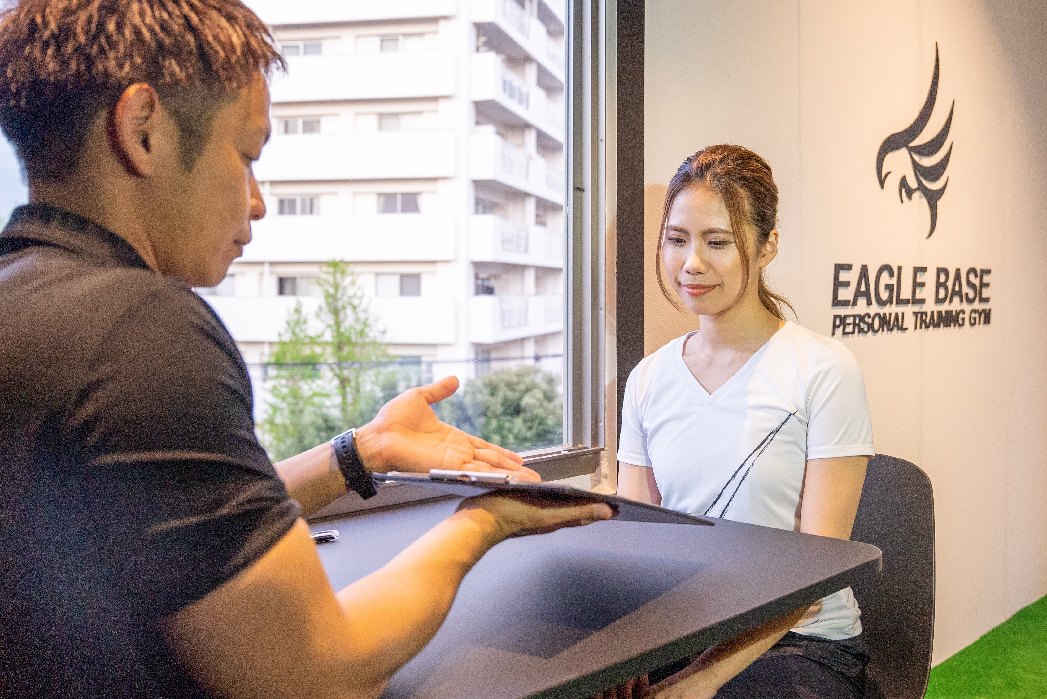 EAGLE BASEでは、採用倍率5%以下の厳選されたトレーナーが完全担当制にてご案内させていただいております。