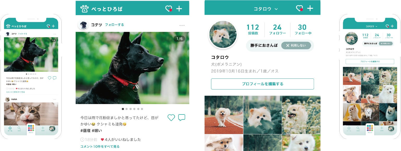 ペットが主役のSNSです。ペットごとにアカウントの作成ができ画像や動画の