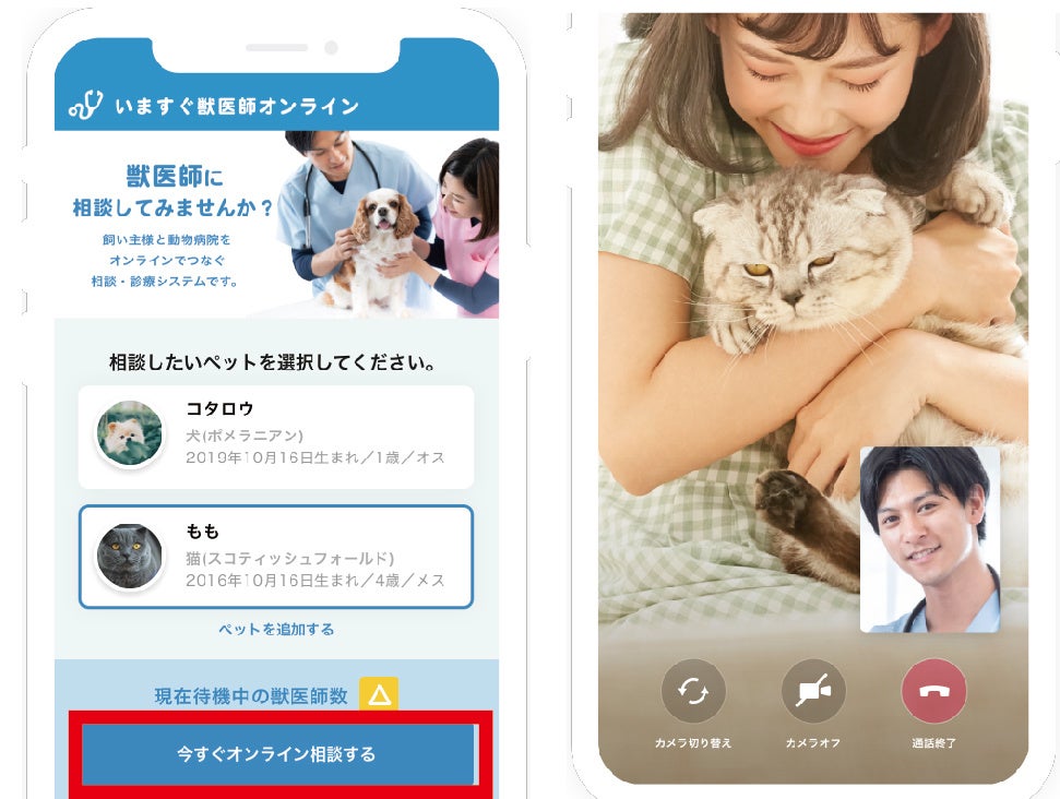 オンライン相談を含むペット関連アプリサービスを一気通貫で揃えており、