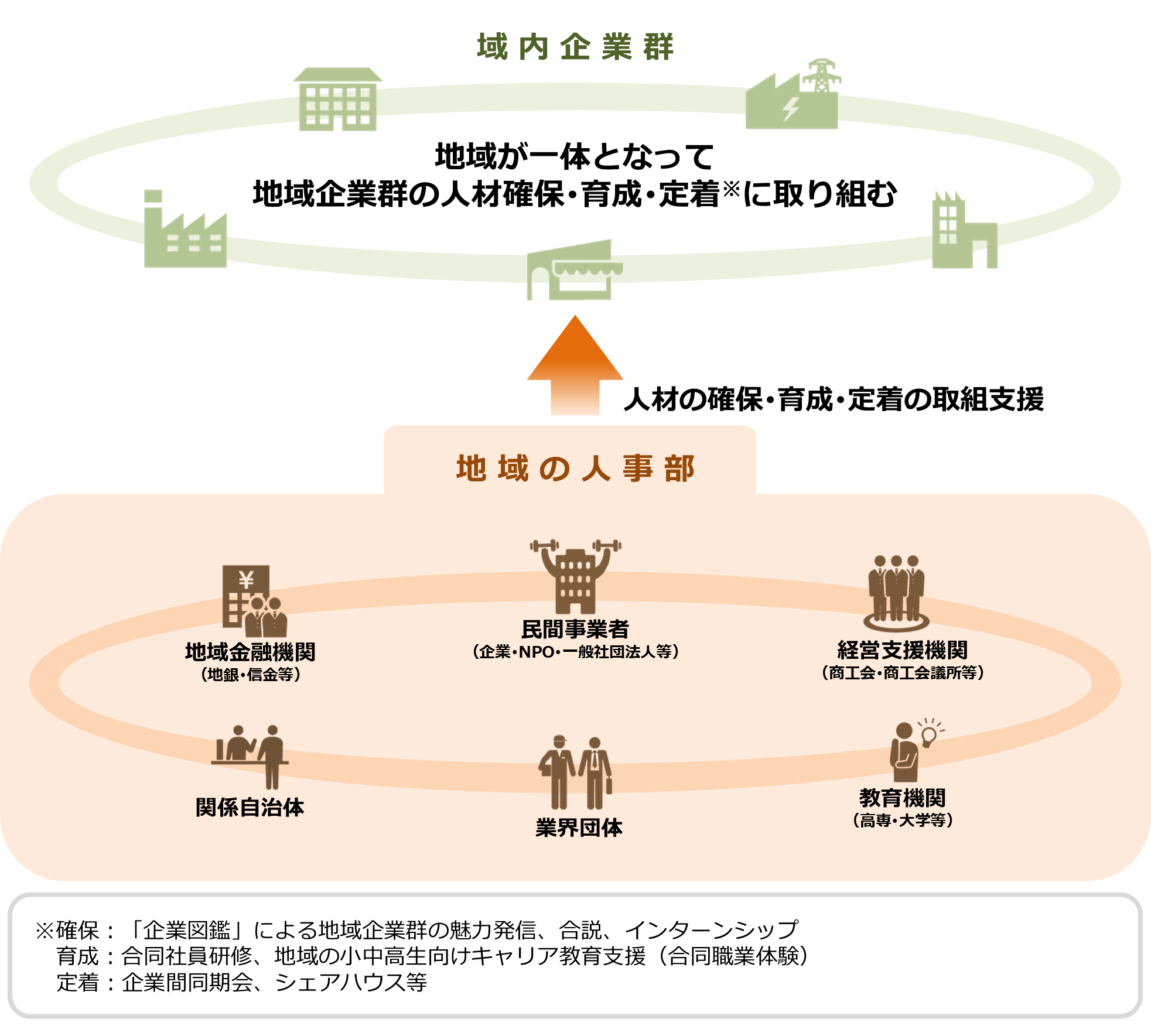 Inquiryはこの10年間、「一社では解決できない課題を、地域ぐるみで解決する」というアプローチを実践してきました。企業単体への伴走支援に加え、自治体・学校・NPOなど多様な主体と連携し、地域全体で人を採り、育てて活かす仕組みを共創する。それが経済産業省が提唱する「地域の人事部」です。Inquiryはこの概念を独自に実践・研究しモデル化を行ってきました。