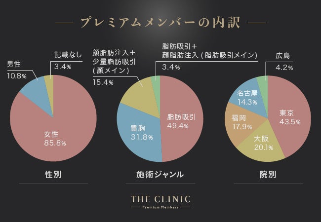 脂肪吸引や脂肪注入など、脂肪に特化した施術を全国5院で展開する美容外科 THE CLINIC (本院所在地:東京都港区西麻布)。同院のプレミアムメンバーの累計登録者数が2023年1月末時点で12,200人を突破しました。