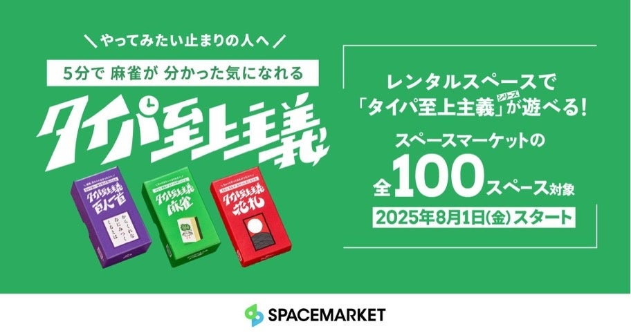 2025年8月1日(金)よりスペースマーケットに掲載されている100スペースにて「タイパ至上主義™︎」シリーズのボードゲーム3種を遊ぶことができます。また、今回対象のスペース利用者限定で商品の割引クーポンもご用意しました。