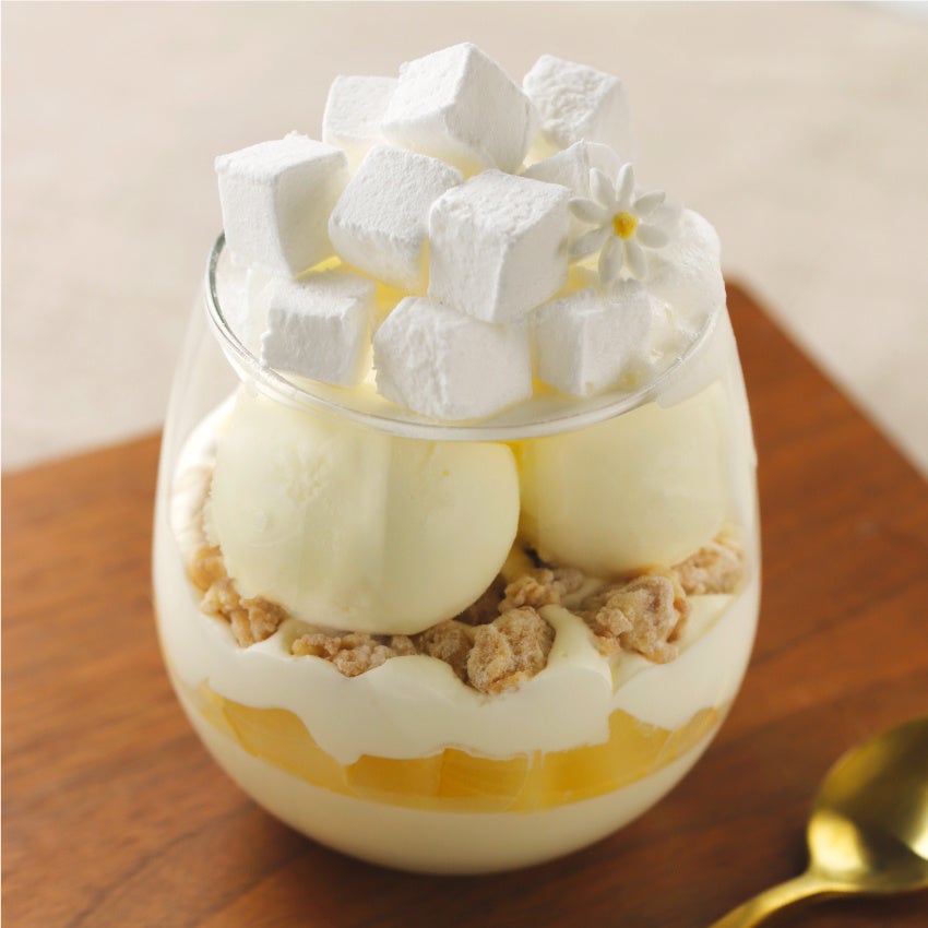 - 白をテーマにしたパフェ。たくさんの美味しさが詰まっています。