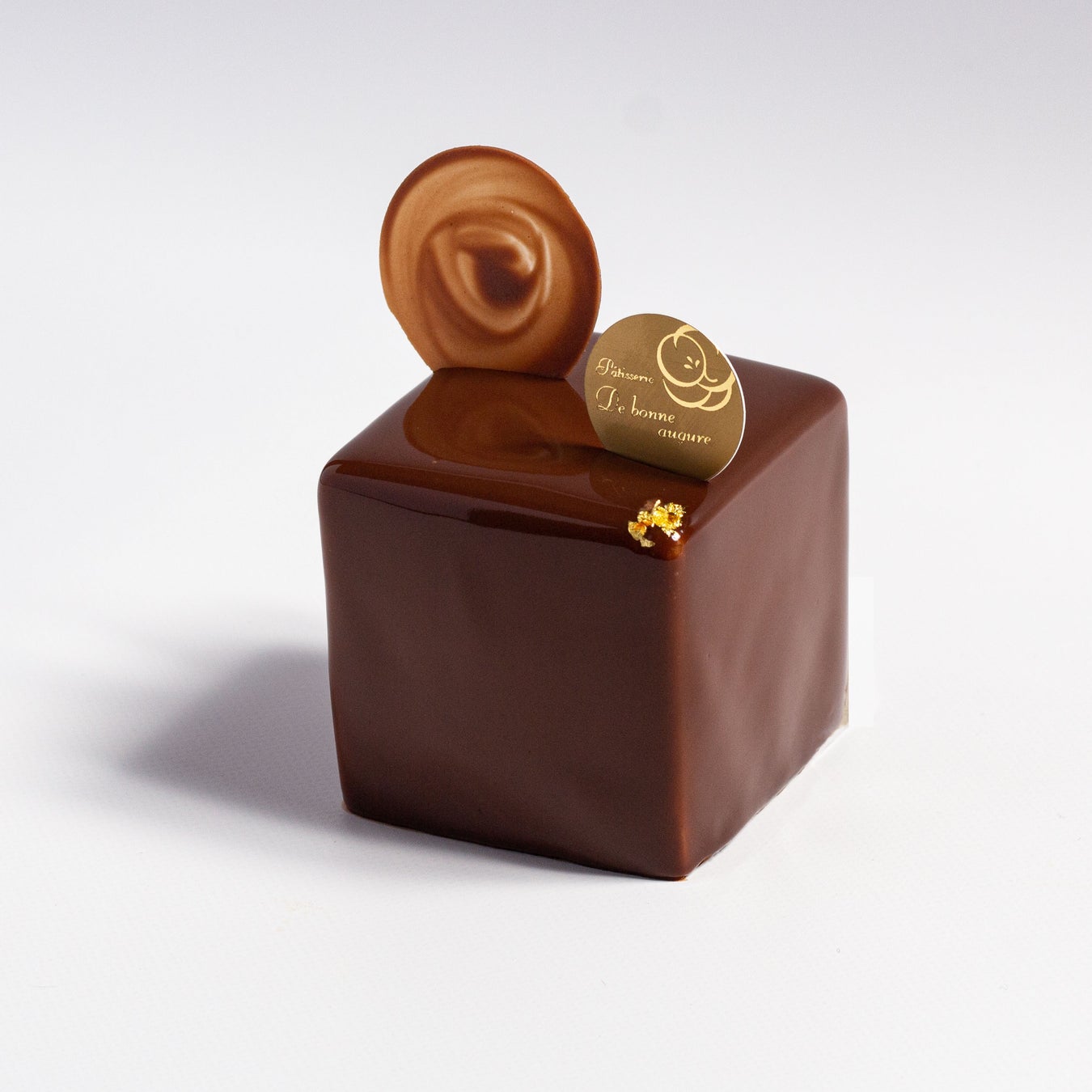 フランスを代表するチョコレートメーカー、ヴァローナ社のブロンズチョコレートを使用したチョコレートケーキ。土台にはブロンズチョコレートと相性の良いヘーゼルナッツの生地を敷き、ベースとなるブロンズチョコレートムースの中にコーヒークリーム、ブロンズチョコレートのガナッシュを入れました。高級感のあるブロンズチョコレートをご堪能いただけるスイーツです。