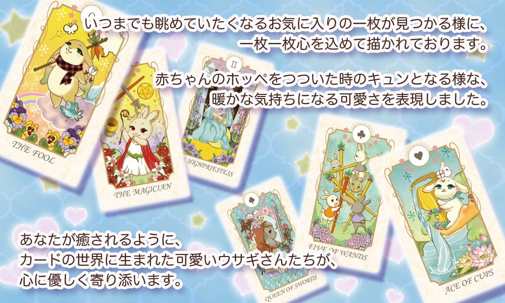 あなたが癒されるように、カードの世界に生まれた可愛いウサギさんたちが、心に優しく寄り添います。