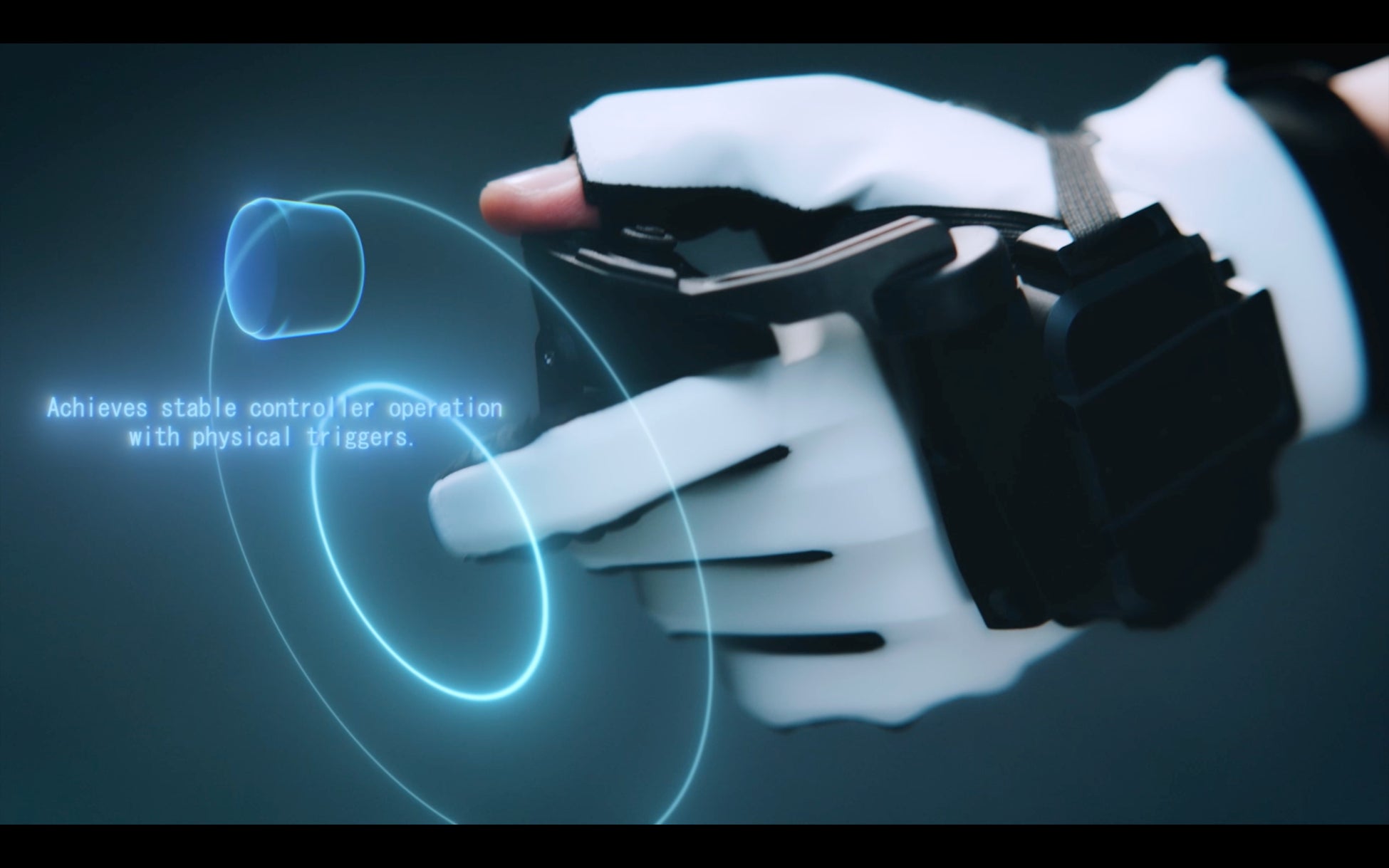 これにより、グローブ型コントローラのメリットであるハンズフリーさ/没入感の高さと、VRコントローラに求められる高い操作性を両立する事が出来ます。