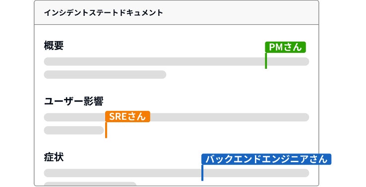 インシデントステートドキュメント機能は、AIによる自動生成をOFFにすることで同時編集可能なドキュメントに切り替えることができます。この機能により複数人でドキュメントを編集しながら組織的にインシデント対応に取り組むことができます。