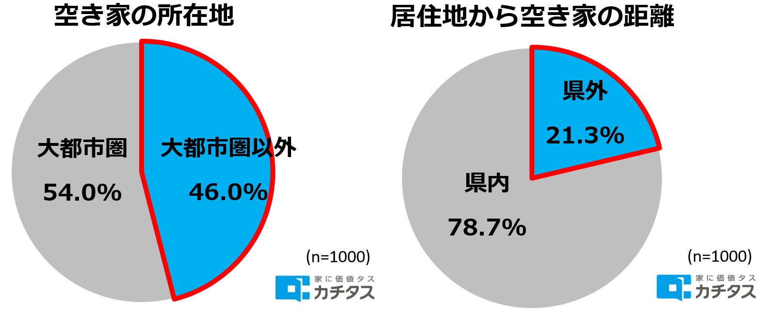 ■空き家のうち、47.0%が大都市圏以外に存在。居住地の県外に空き家を抱える人は5人に1人の割合。