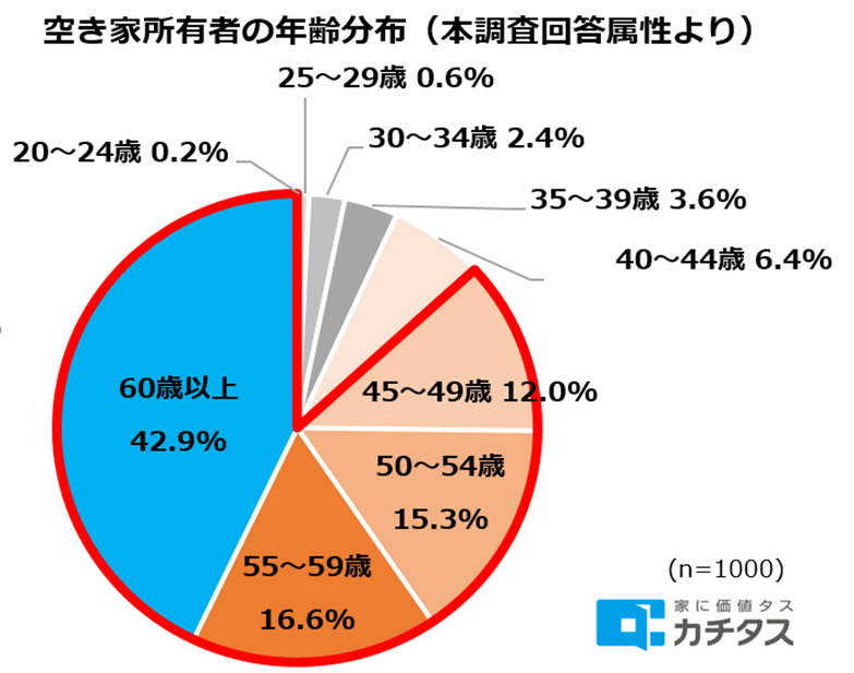 前項でも示した通り、空き家の売却先に手離れの良さを求めている空き家所有者が増えてきている傾向にあります。実際に、荷物を残したまま弊社へ売却依頼をいただくケースは約6割と半数以上です。そして空き家所有者は45歳以上の中高齢者や高齢者が約8割以上です。そのような方々を中心とした空き家所有者による残置物の処理は、負担が大きい事を改めて実感しました。