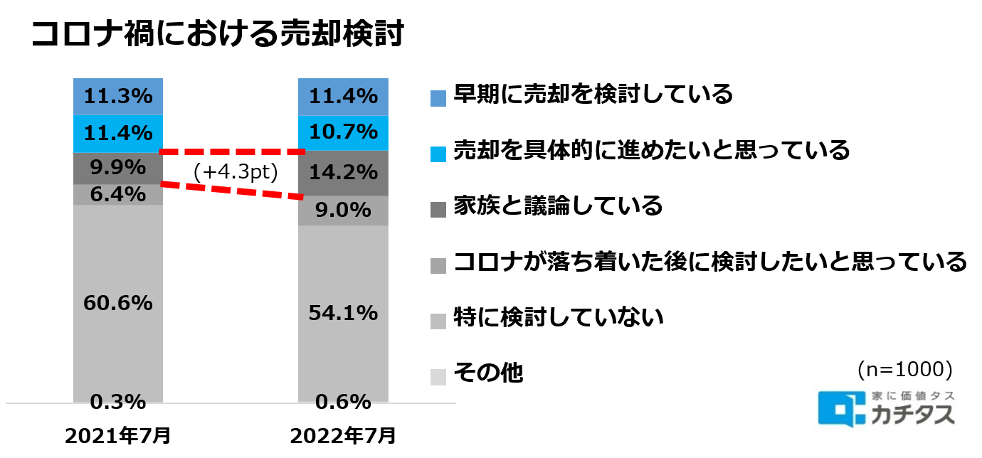 - 1. 「売却意向(22.1%)」は5人に1人の割合で昨年と同等。「家族と議論している(14.2%)」と答えた人は、前回比+4.3ポイント。